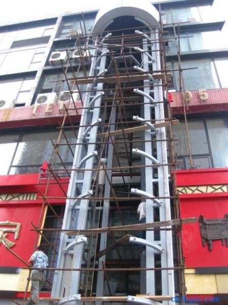 豎向荷載主要是井道鋼框架自重、圍護結構荷載、電梯機房樓面荷載(有機房井道)、曳引設備支承荷載、井道屋面荷載等。對于較高的井道,井道與原有結構拉結節點宜作成豎向滑動支承,以釋放豎向荷載作用下的井道位移,否則豎向荷載較大時將產生較大的附加內力。一般可以通過化學螺栓的端板上設滑槽孔來實現。這種方法對于減小因井道基礎沉降產生的井道附加內力也十分有利。 ·井道在風荷載作用下的受力特征分析: