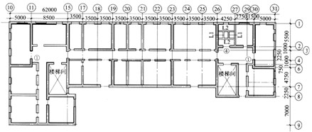 在加固的同時,還要將其改造具有現代設施(如中央空調、先進的電信系統等)的辦公用樓。增設風機房處荷載較大,需對相關的樓板及梁進行加固;墻上開洞多且不規則,結構上需進行處理。